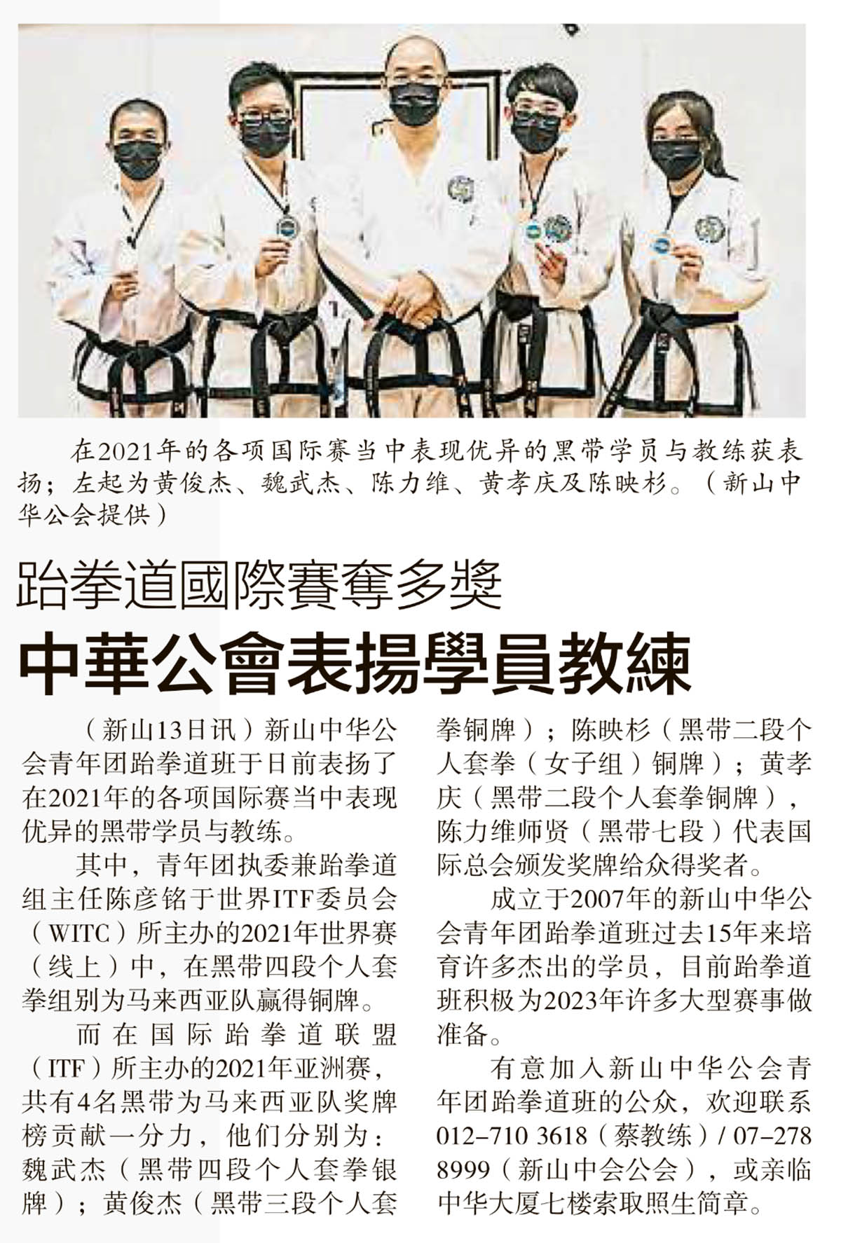 跆拳道国际赛夺多奖-中华公会表扬学员教练