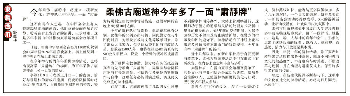 东麟西爪-柔佛古庙游神今年多了一面 “肃静牌”