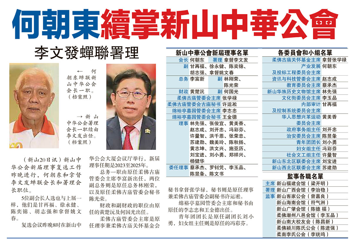何朝东续掌新山中华公会-李文发蝉联署理