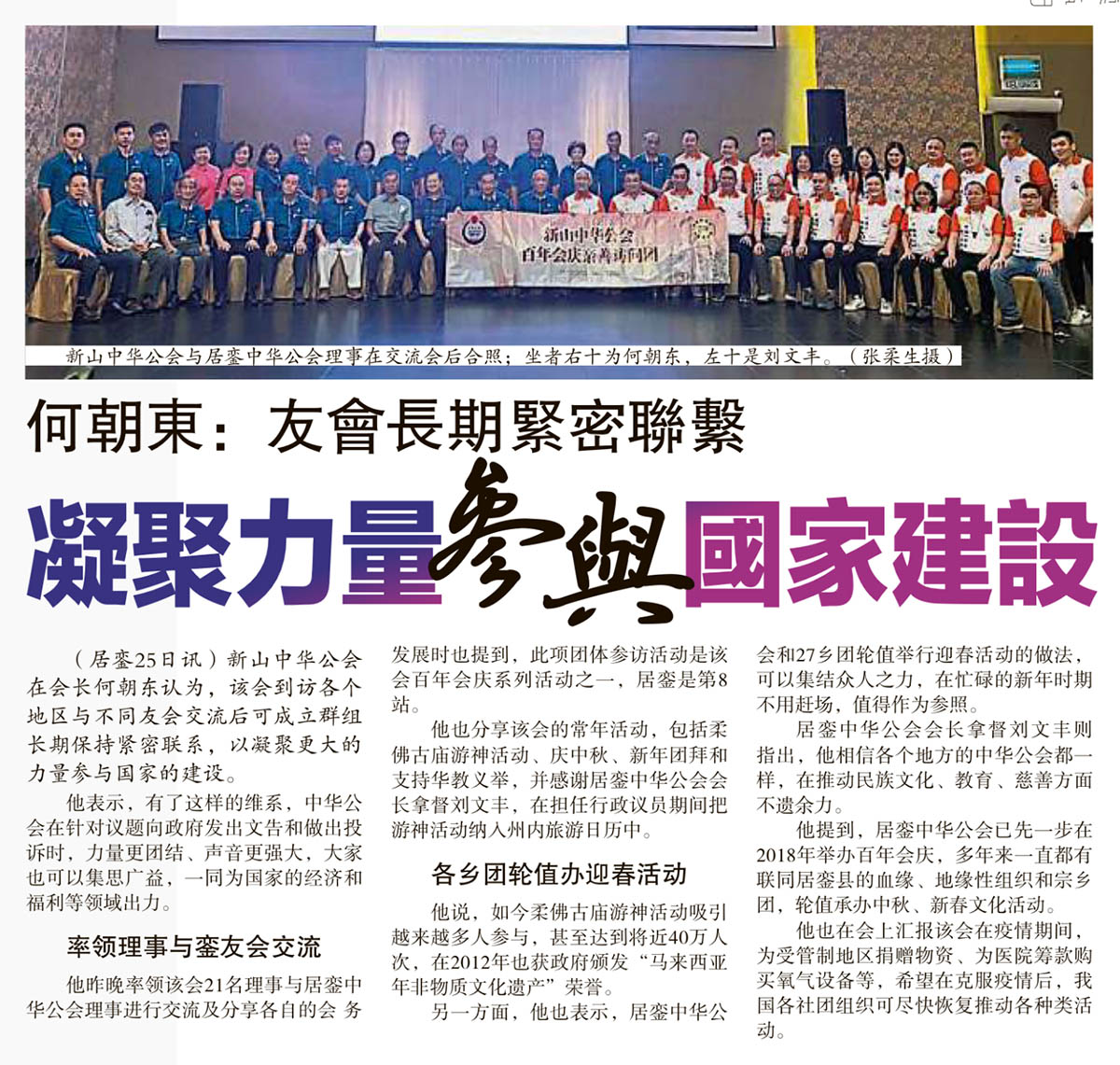 何朝东:友会长期紧密联系-凝聚力量参与国家建设