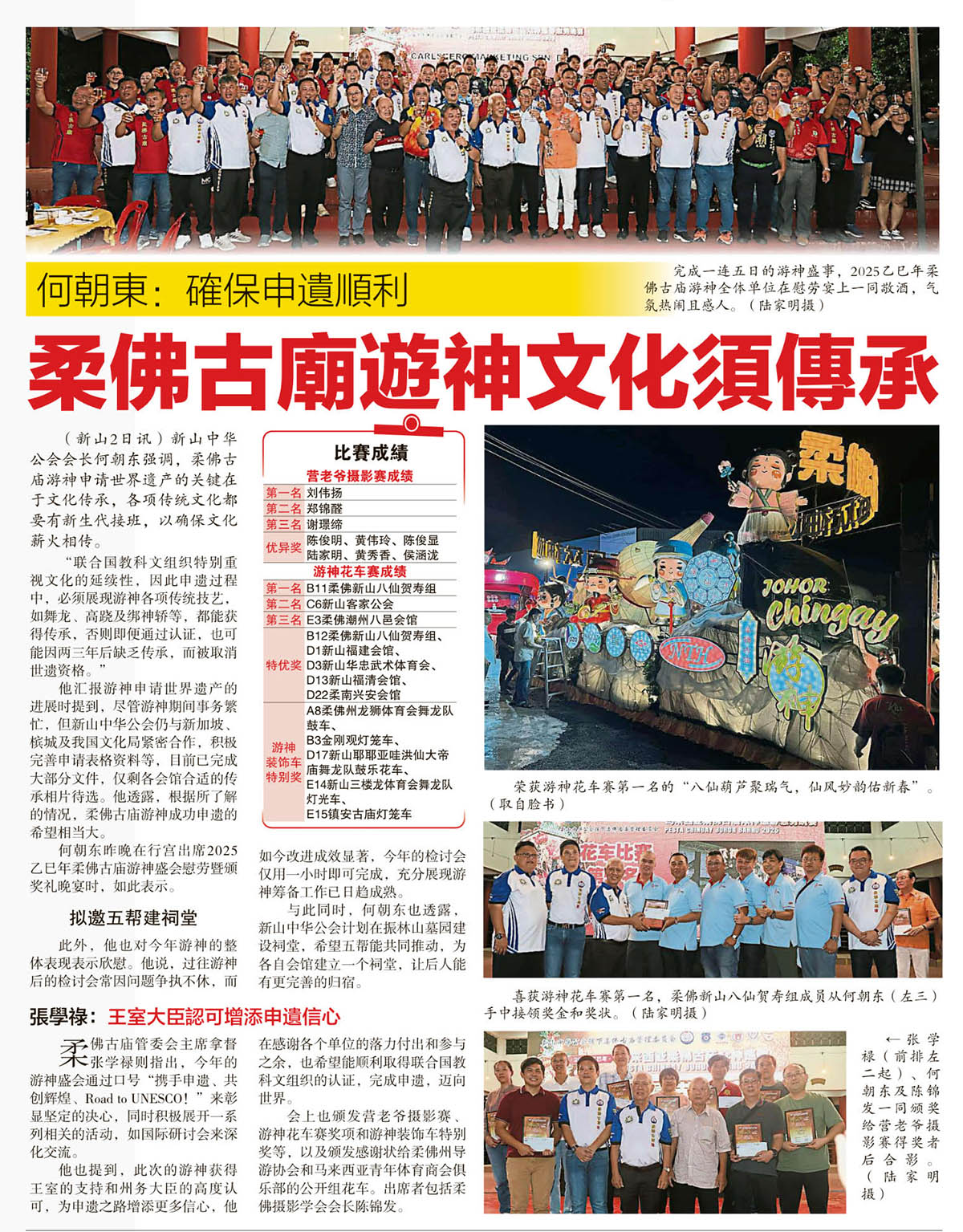 何朝东:确保申遗顺利-柔佛古庙游神文化须传承