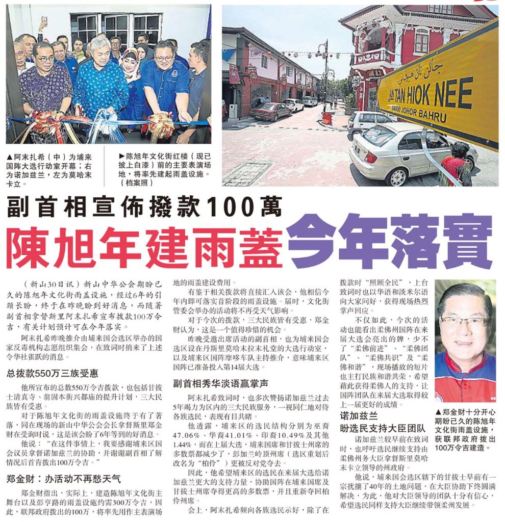 副首相宣布拨款100万-陈旭年建雨盖今年落实