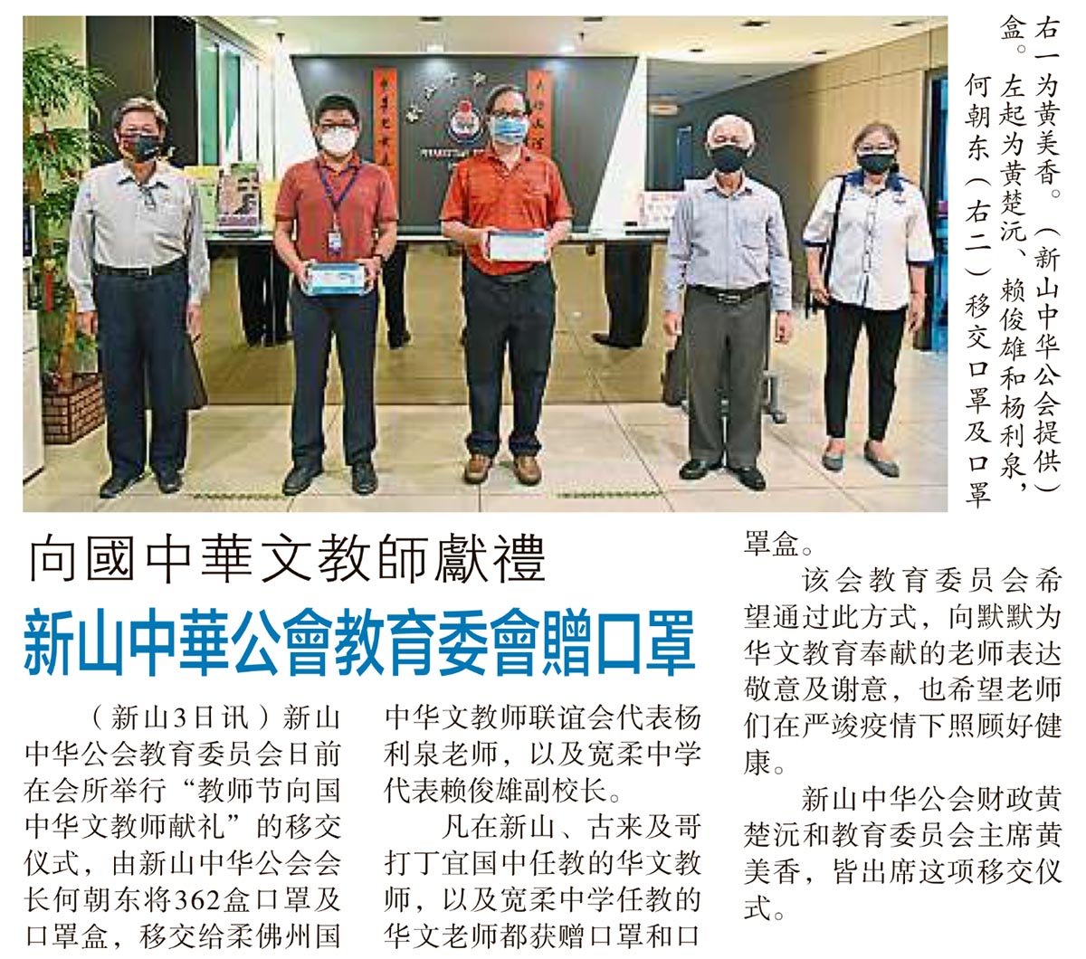 剪报 小组 / 委员会 教育委员会 资料库 向国中华文教师献礼-新山中华公会教育委会赠口罩 September 4, 2021February 8, 2022 gypsy 736 Views 星洲日报剪报