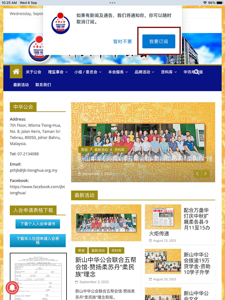 使用Android游览器进入网站:https://www.jb-tionghua.org.my/main/