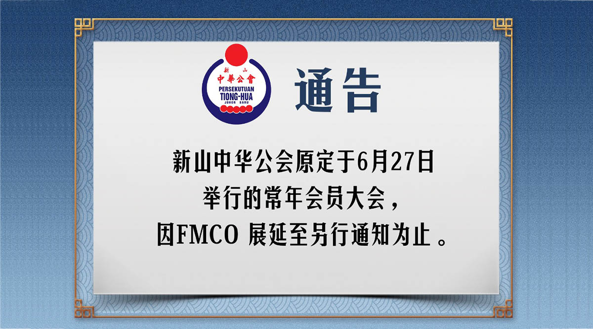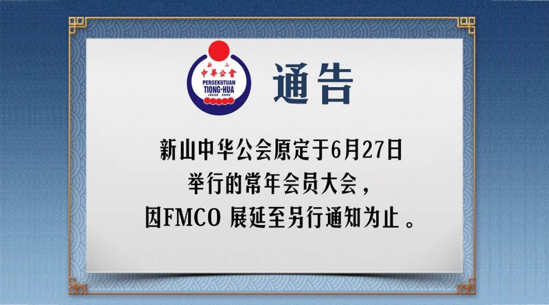 理监事会 常年会员大会展延 June 13, 2021February 8, 2022 gypsy 1043 Views 本会原定于6月27日举行的常年会员大会,因FMCO展延至另行通知为止。 本会将于新的大会日期确定后,根据章程,21天前将通告及报告书以邮寄方式寄给会员。 另,呼吁全体会员,务必自律减少出门,并积极参与政府的疫苗施打计划,共同抗疫。