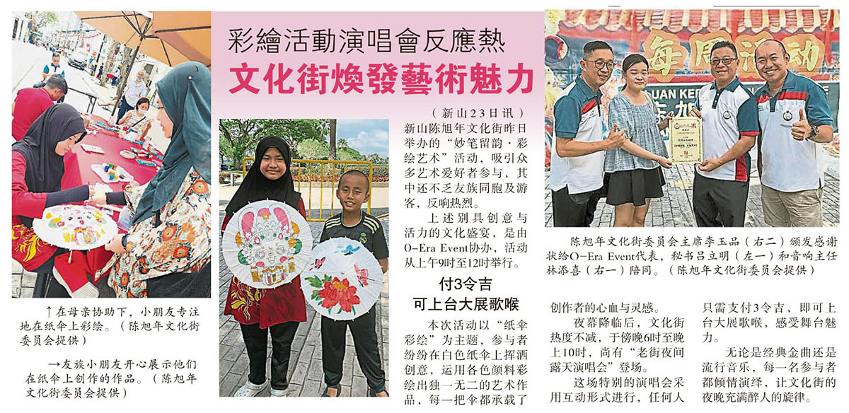剪报 品牌活动 最新活动 资料库 陈旭年文化街 彩绘活动演唱会反应热-文化街焕发艺术魅力 February 24, 2025February 24, 2025 gypsy 247 Views 星洲日报剪报
