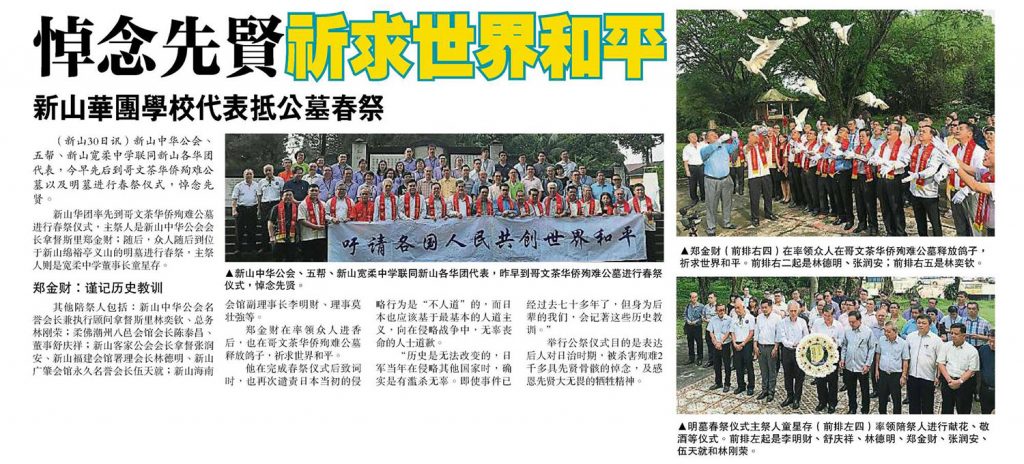 悼念先贤祈求世界和平-新山华团学校代表抵公墓春祭