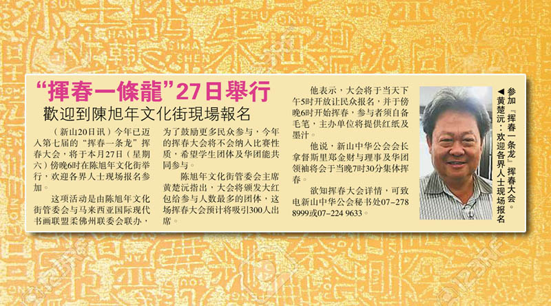“挥春一条龙”27日举行-欢迎到陈旭年文化街现场报名