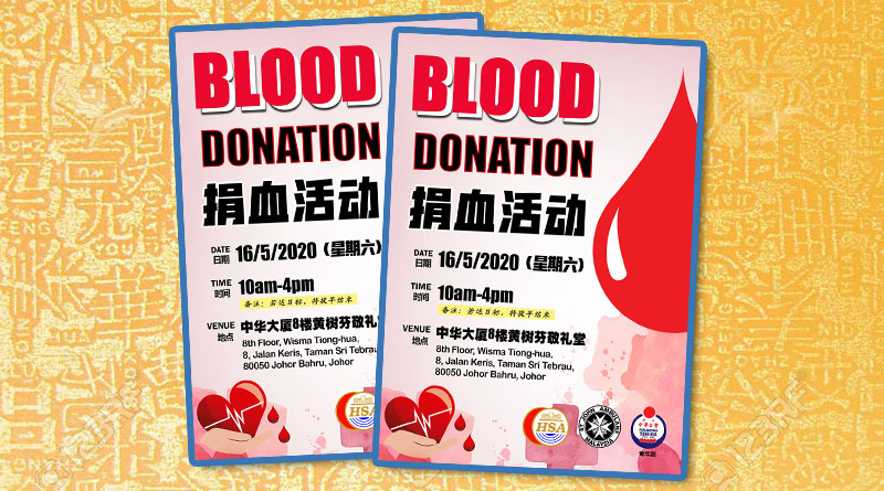小组 / 委员会 青年团 捐血活动 May 11, 2020April 9, 2021 gypsy 3583 Views 日期: 16-05-2020(星期六) 时间: 10am ~ 4pm (备注:若达目标,将提早结束) 地点: 中华大厦8楼黄树芬敬礼堂 8th, Jalan Keris, Taman Sri Tebrau, 80050 Johor Bahru, Johor.