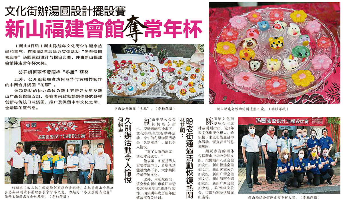 剪报 品牌活动 小组 / 委员会 新山陈旭年文化街委员会 资料库 陈旭年文化街 文化街办汤圆设计摆设赛-新山福建会馆夺常年杯 December 5, 2021February 8, 2022 gypsy 941 Views 星洲日报剪报