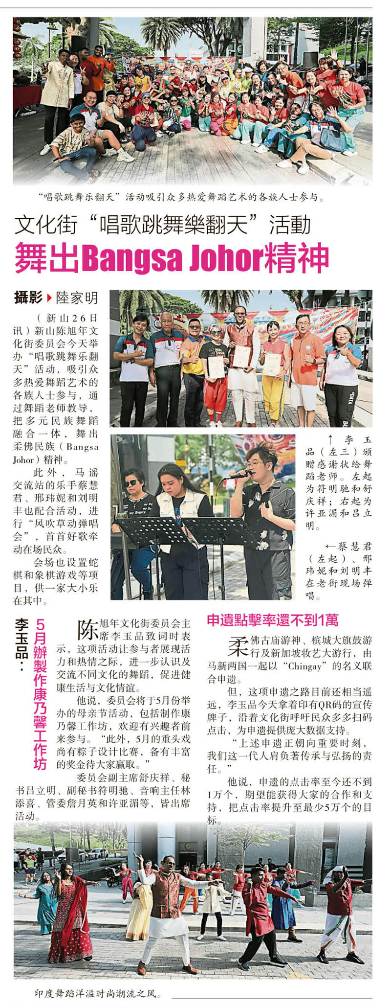 剪报 品牌活动 资料库 陈旭年文化街 文化街“唱歌跳舞乐翻天”活动-舞出Bangsa Johor精神 April 27, 2025October 31, 2025 gypsy 288 Views 星洲日报剪报