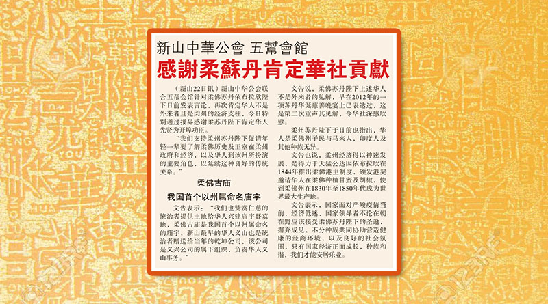 新山中华公会五帮会馆-感谢柔苏丹肯定华社贡献