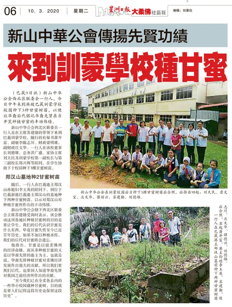 新山中华公会传扬先贤功绩-来到训蒙学校种甘蜜