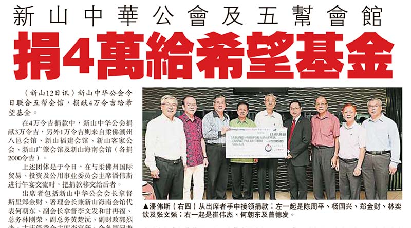 新山中华公会及五帮会馆-捐4万给希望基金