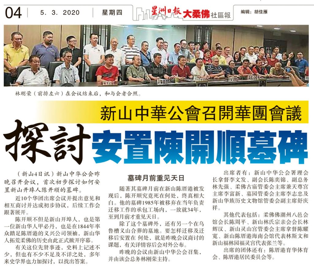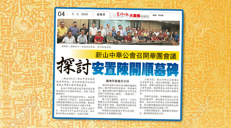 新山中华公会召开华团会议-探讨安置陈开顺墓碑