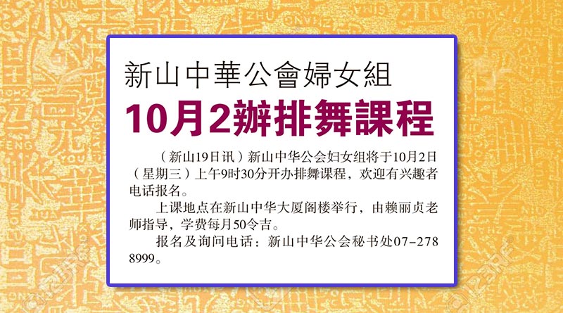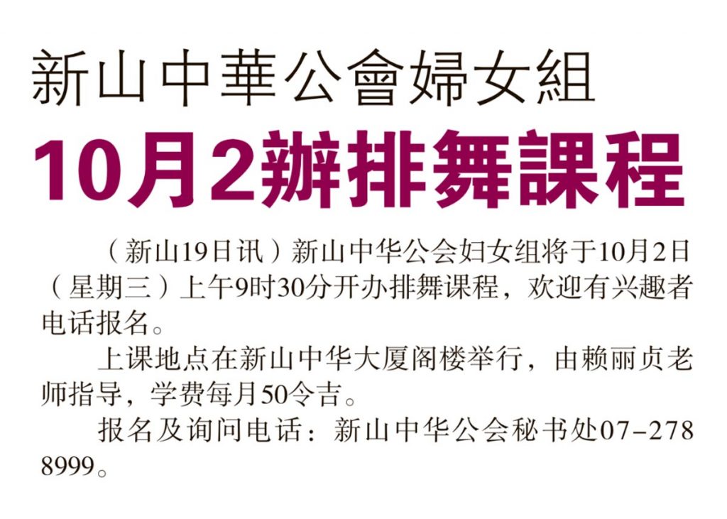 新山中华公会妇女组-10月2办排舞课程