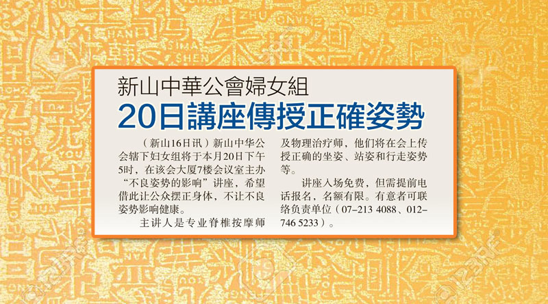 新山中华公会妇女组-20日讲座传授正确姿势