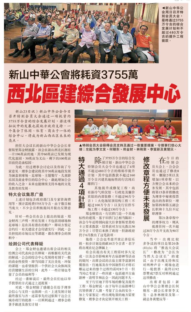 新山中华公会将耗资3755万-西北区建综合发展中心