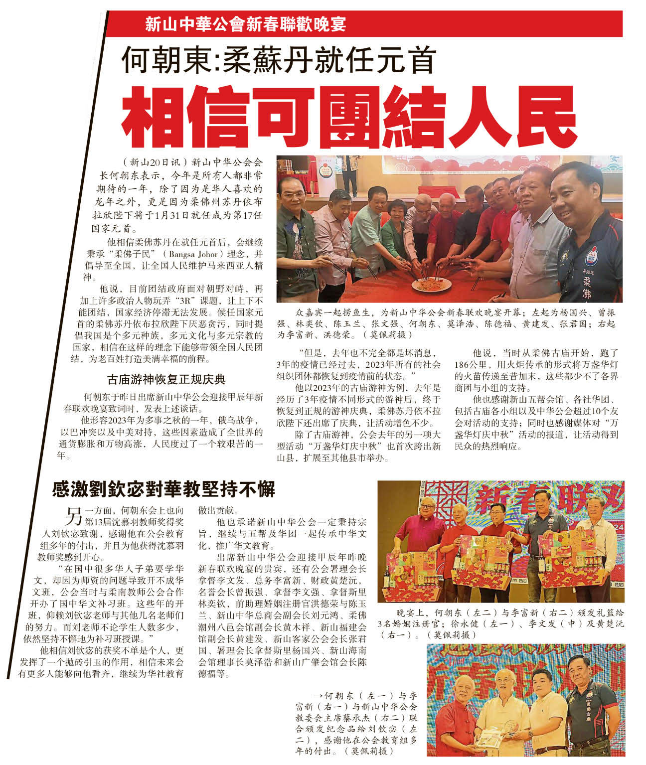 新山中华公会新春联欢晚会-何朝东:柔苏丹就任元首-相信可团结人民