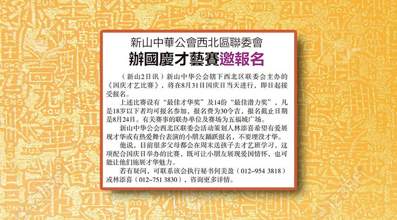 新山中华公会西北区联委会-办国庆才艺赛邀报名