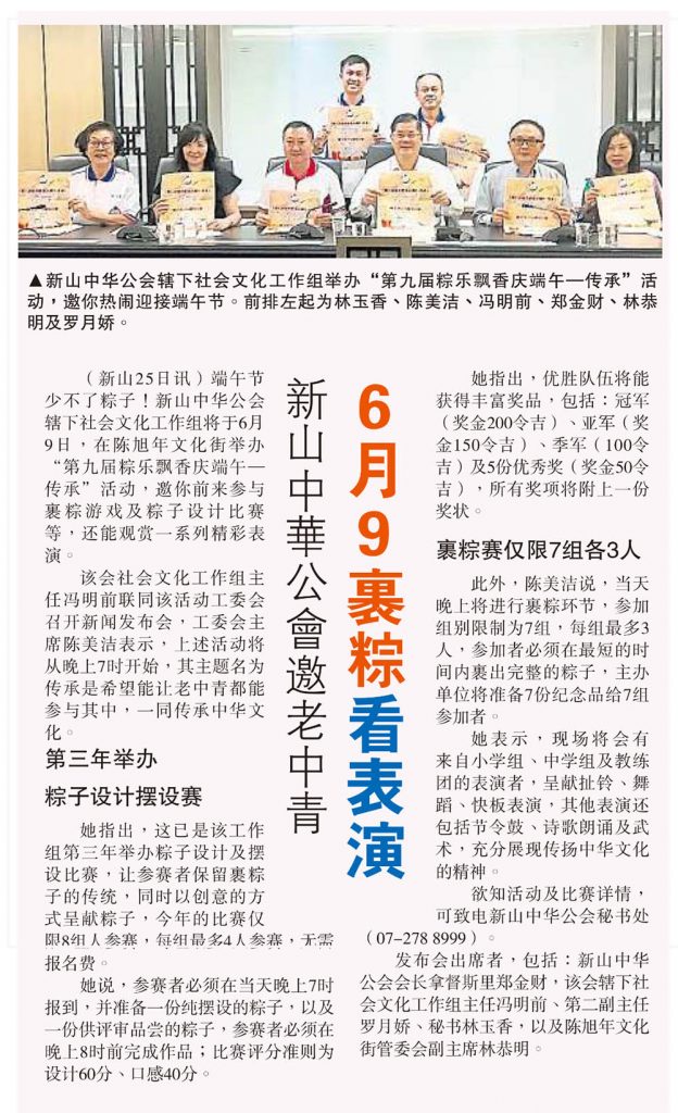 新山中华公会邀老中青-6月9裹粽看表演