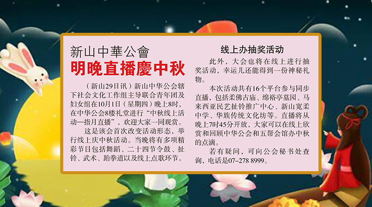新山中华公会-庆中秋食阁开幕新“家” 啓用-10月3迎3喜