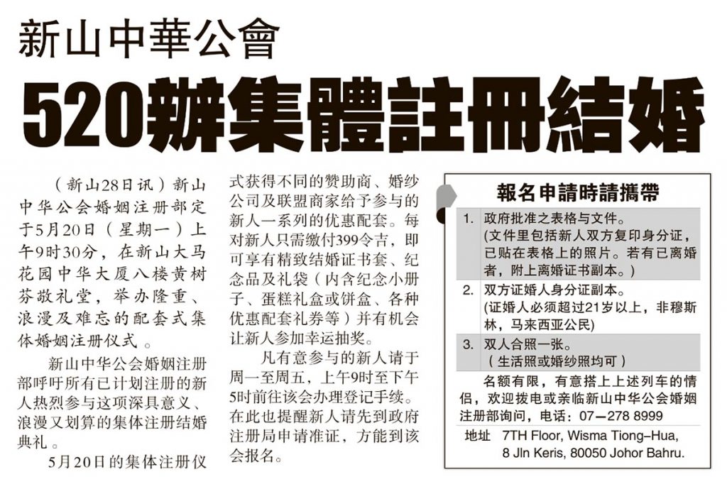 新山华社庆祝五四运动百年-讲座书法赛5月4登场