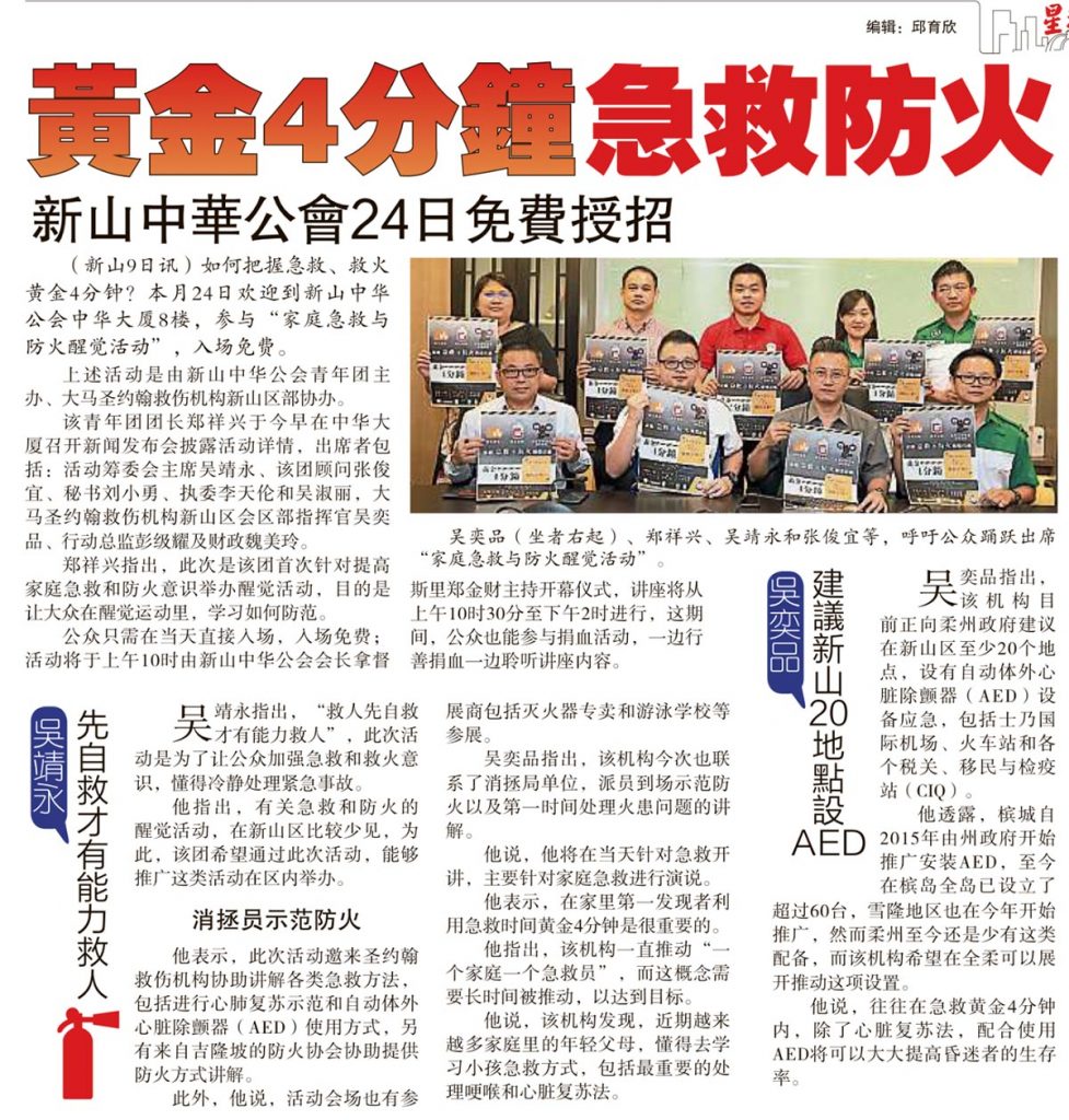 新山中华公会24日免费授招-黄金4分钟急救防火