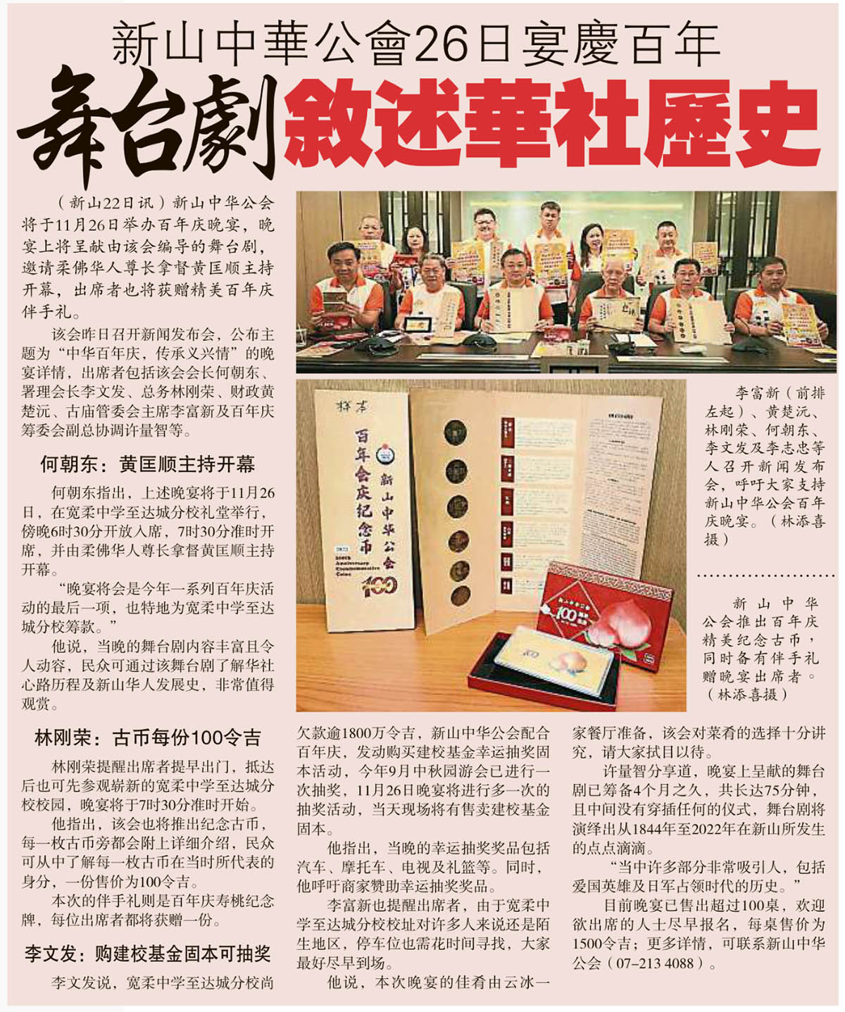 新山中华公会26日宴庆百年-舞台剧叙述华社历史