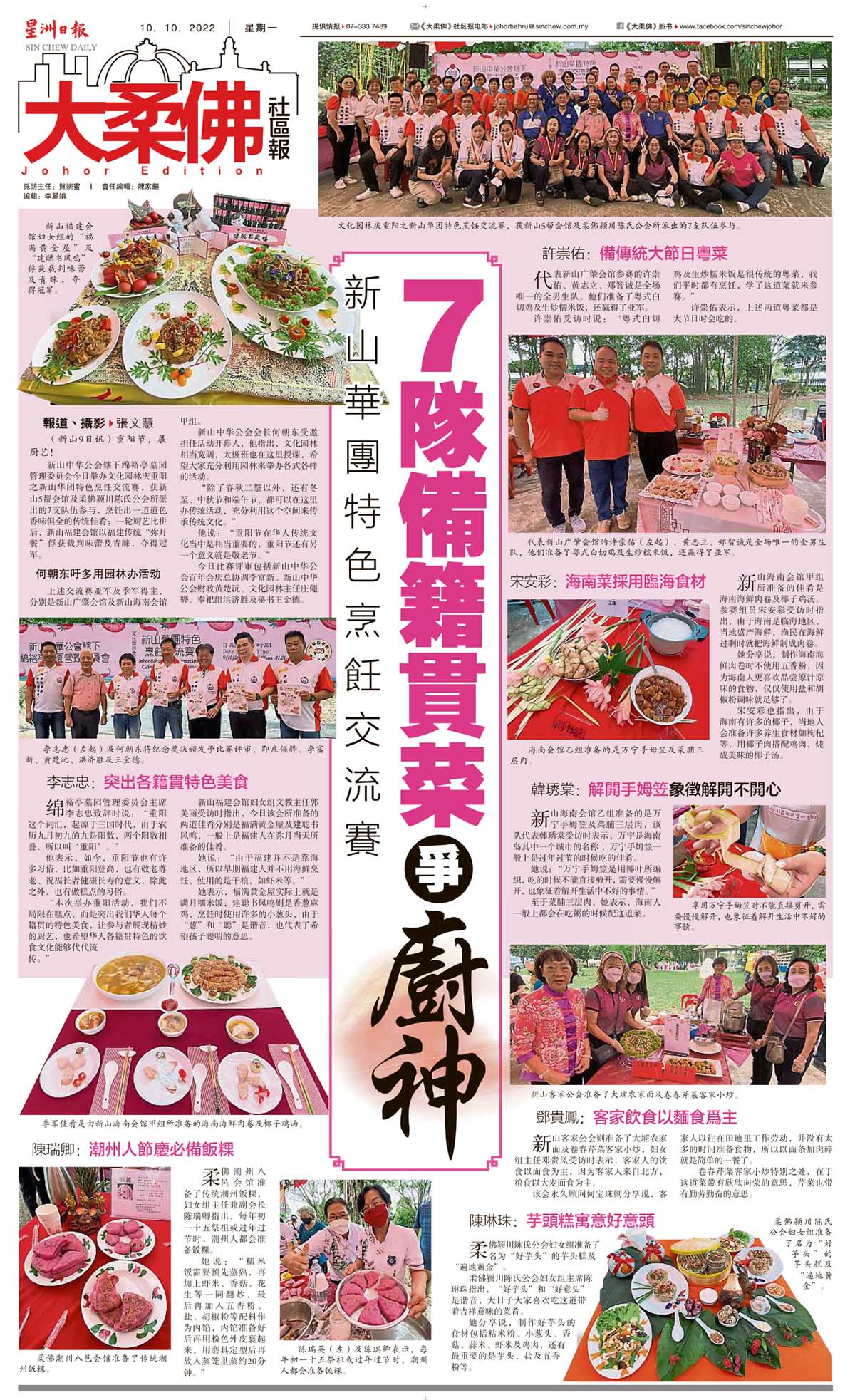 剪报 小组 / 委员会 绵裕亭墓园管理委员会 资料库 新山华团特色烹饪交流赛-7队备籍贯菜争厨神 October 10, 2022January 2, 2023 gypsy 602 Views 星洲日报剪报