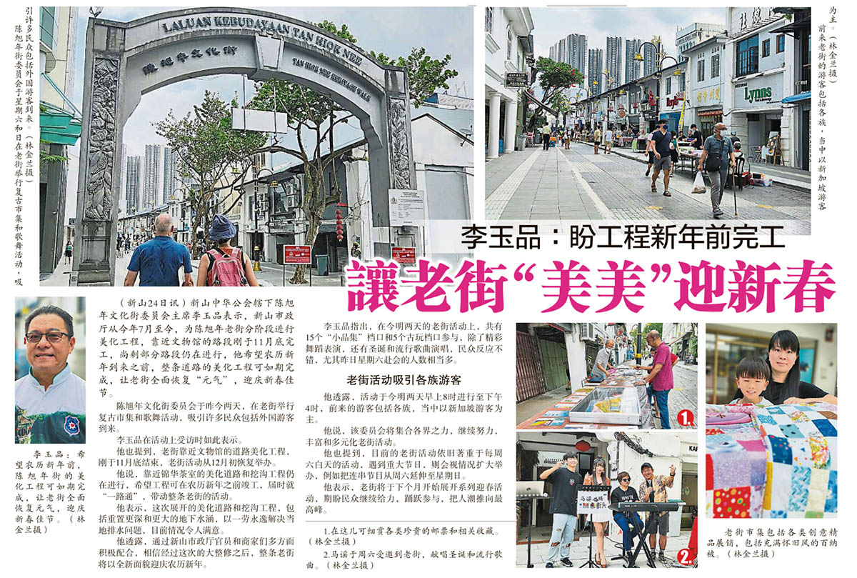 剪报 小组 / 委员会 新山陈旭年文化街委员会 资料库 李玉品:盼工程新年前完工-让老街“美美”迎新春 December 25, 2023September 2, 2024 gypsy 464 Views 星洲日报剪报