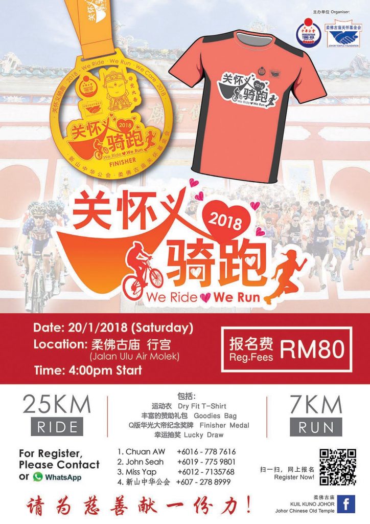 Johor Chinese Old Temple is organising the 3rd “We Ride We Run We Care” to raise fund for Johor Temple Foundation.