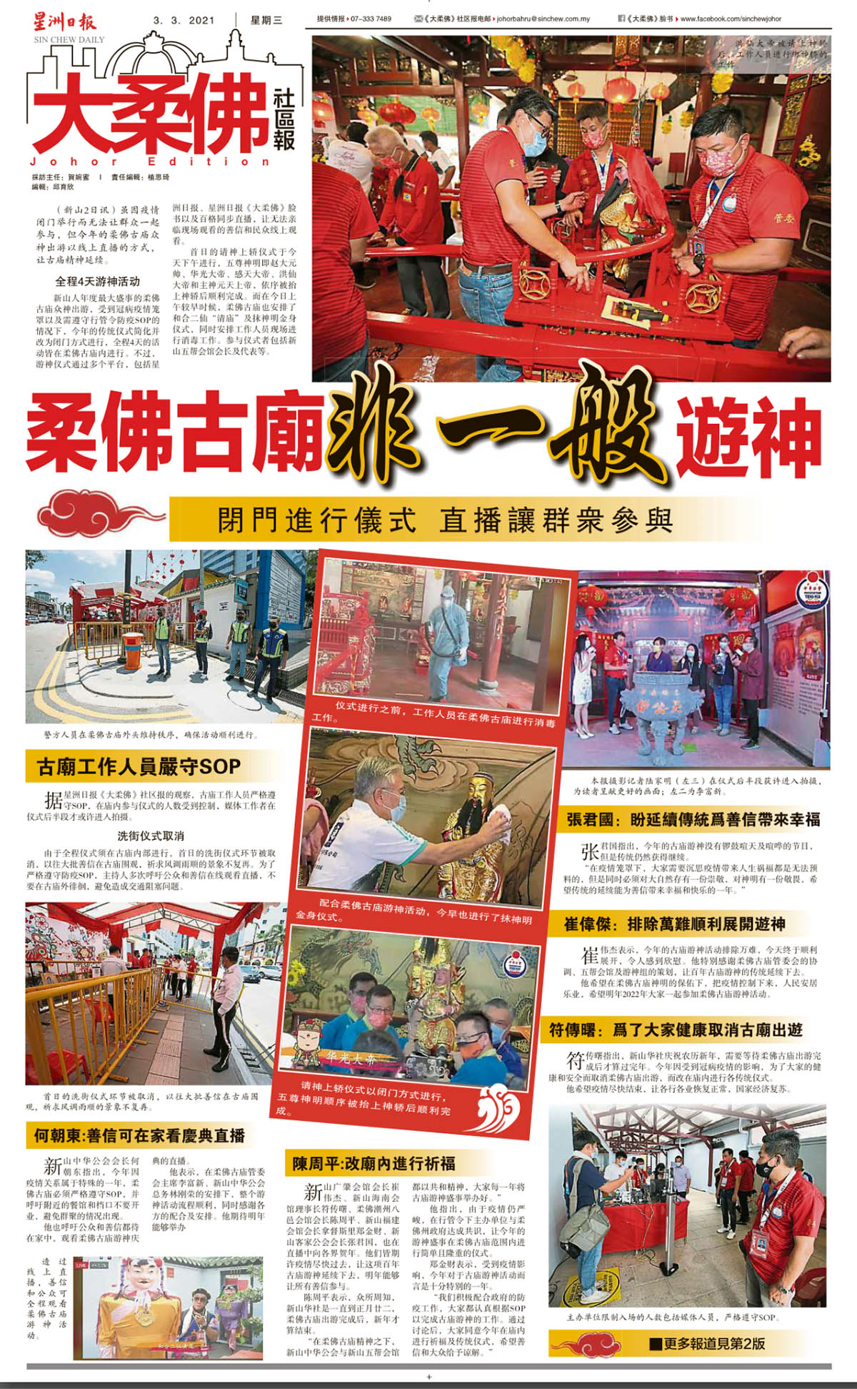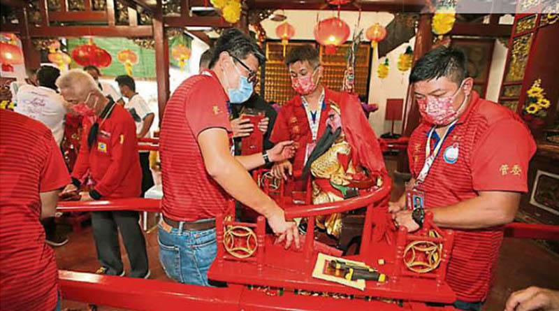 闭门方式进行传统仪式-柔佛古庙游神线上直播