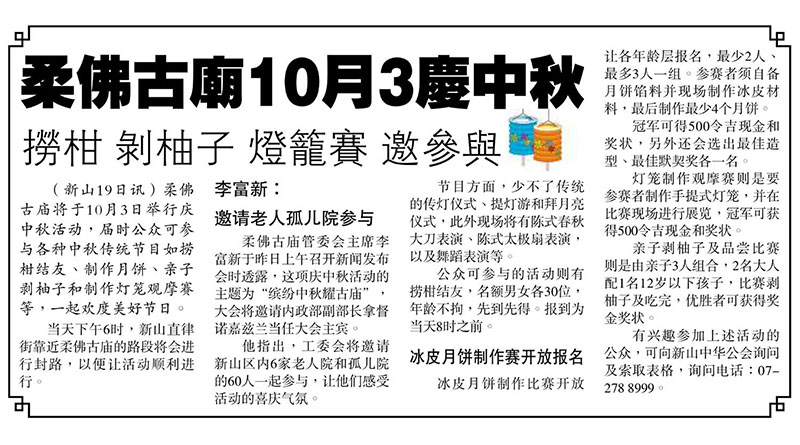新山中华公会东北区迎中秋-后日邀逛市集拜月娘