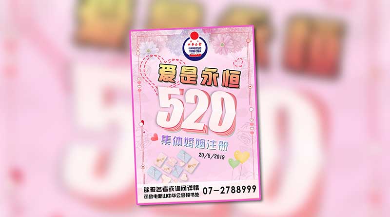婚姻注册服务 本会服务 “爱是永恒520”集体婚姻注册 April 9, 2019July 5, 2019 gypsy 2375 Views 新山中华公会将于2019-05-20日举办“爱是永恒520”集体婚姻注册。 欲报名参加者或想了解详情,请拨电话:07-2788999 婚姻部询问。