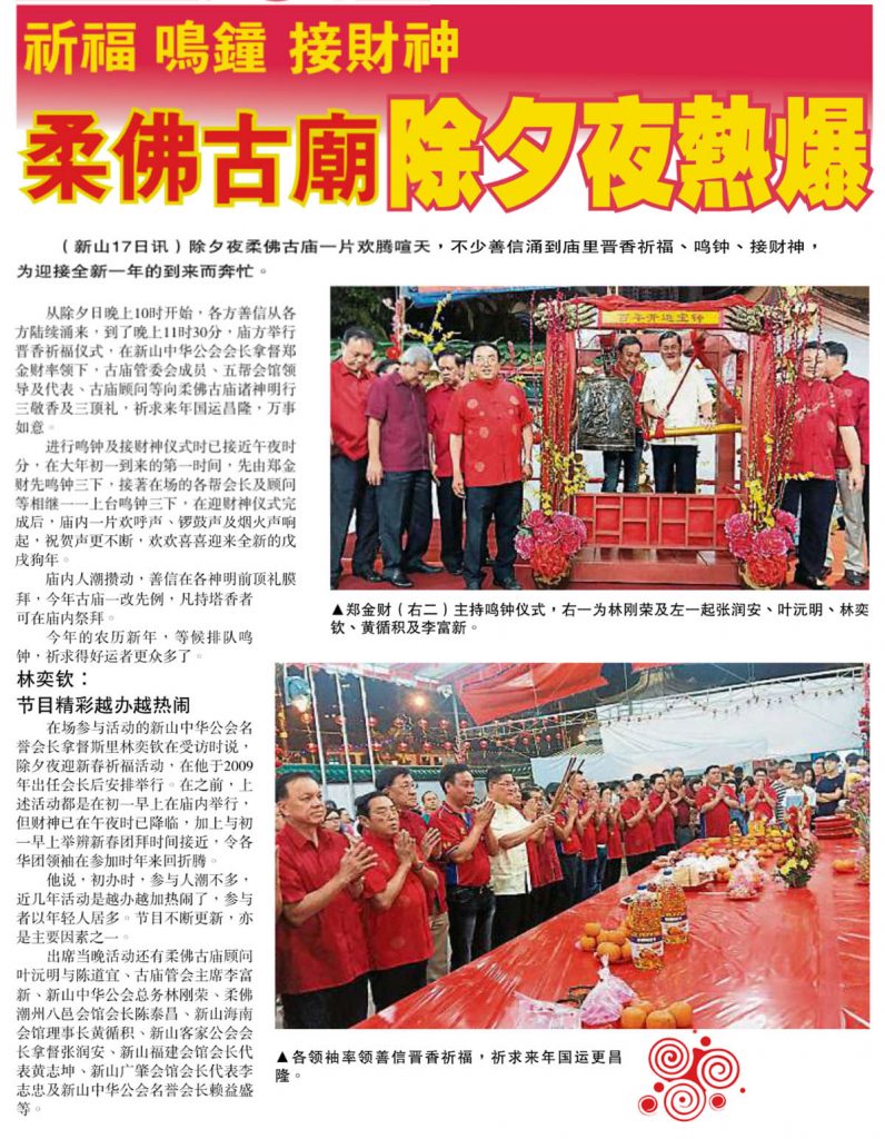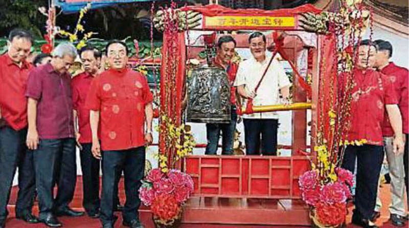 祈福鸣钟接财神-柔佛古庙除夕夜热爆