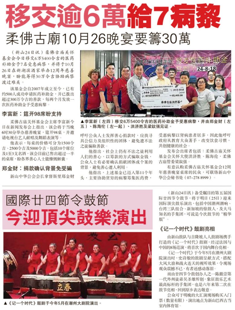 剪报 本会服务 柔佛古庙关怀基金会 资料库 移交逾6万给7病黎-柔佛古庙10月26晚要筹30万 August 25, 2018January 14, 2019 gypsy 2328 Views 星洲日报剪报