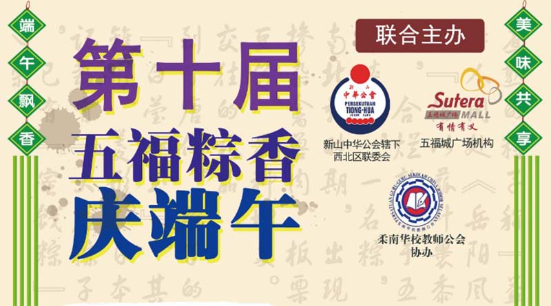 由新山中华公会辖下西北区联委会与五福城广场机构联办的2019年第十届《五福粽香庆端午》之“美味粽子制作比赛”将于今年的5月26 日星期天早上10点在士姑来五福城广场底层绿园餐馆旁进行比赛。