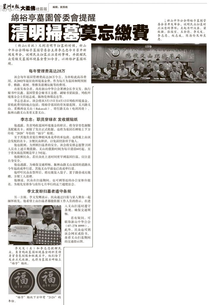 新山中华公会召开华团会议-探讨安置陈开顺墓碑