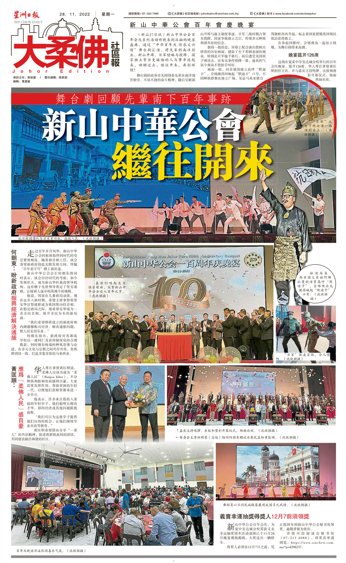 舞台剧回顾先辈南下百年事迹-新山中华公会继往开来