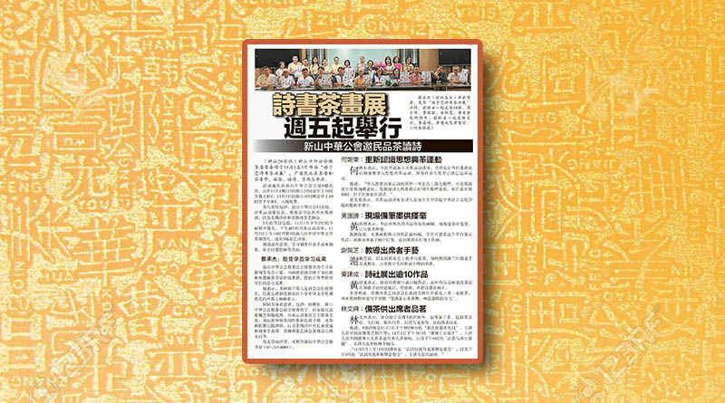 剪报 小组 / 委员会 教育委员会 资料库 诗书茶画展周五起举行-新山中华公会邀民品茶读诗 October 29, 2024October 31, 2025 gypsy 286 Views 星洲日报剪报