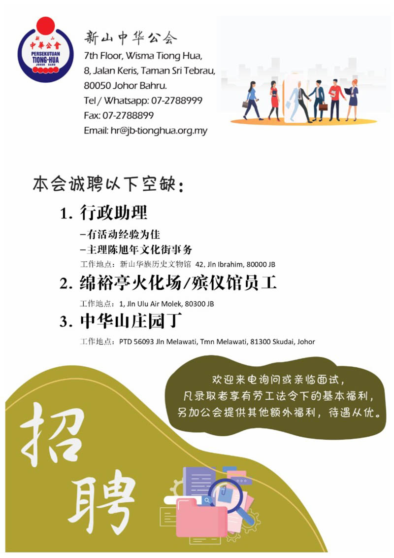 诚聘行政助理、绵裕亭火化场/殡仪馆员工及中华山庄园丁