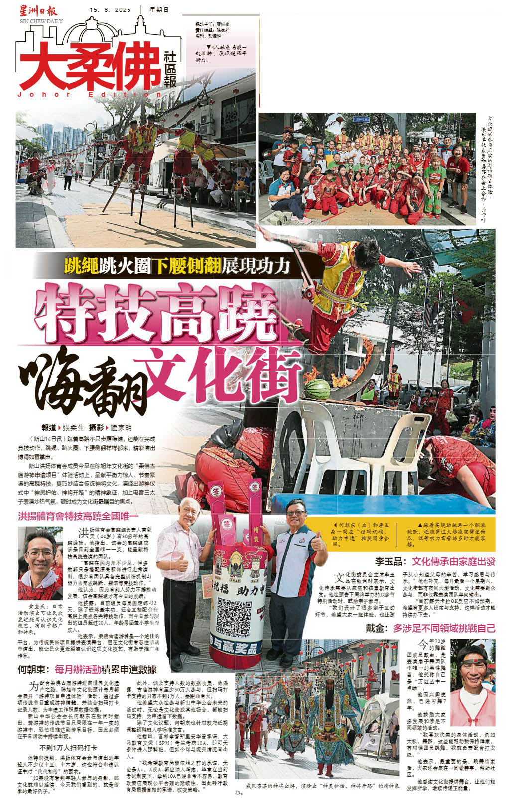 跳绳跳火圈下腰侧翻展现功力-特技高跷嗨翻文化街