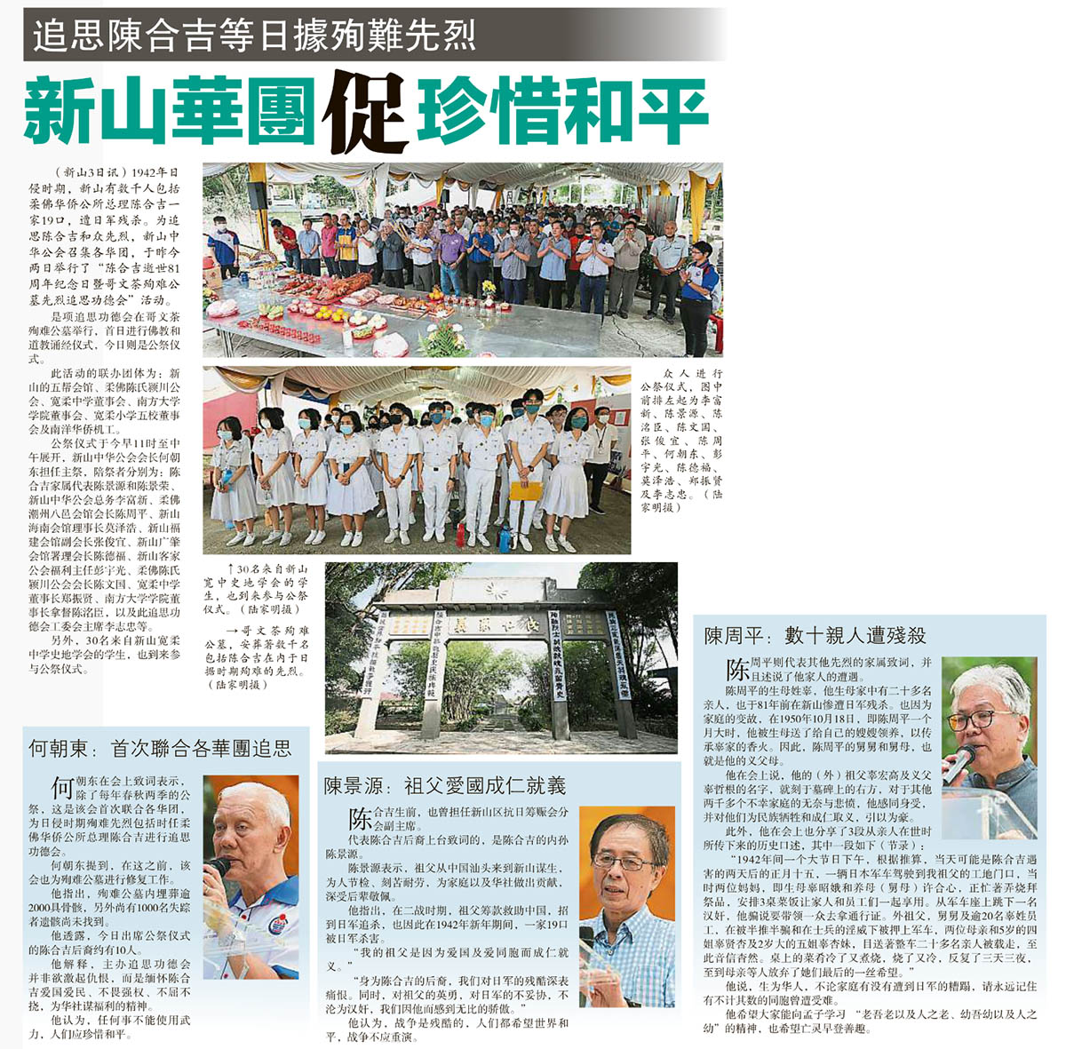 追思陈合吉等日据殉难先烈-新山华团促珍惜和平