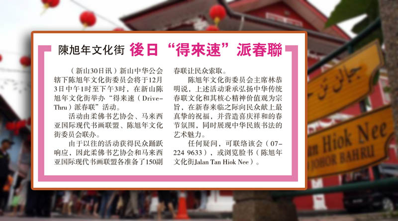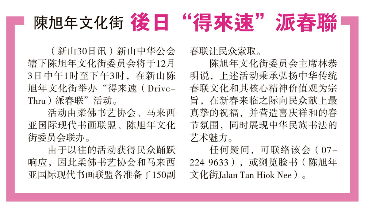 陈旭年文化街后日“得来速”派春联