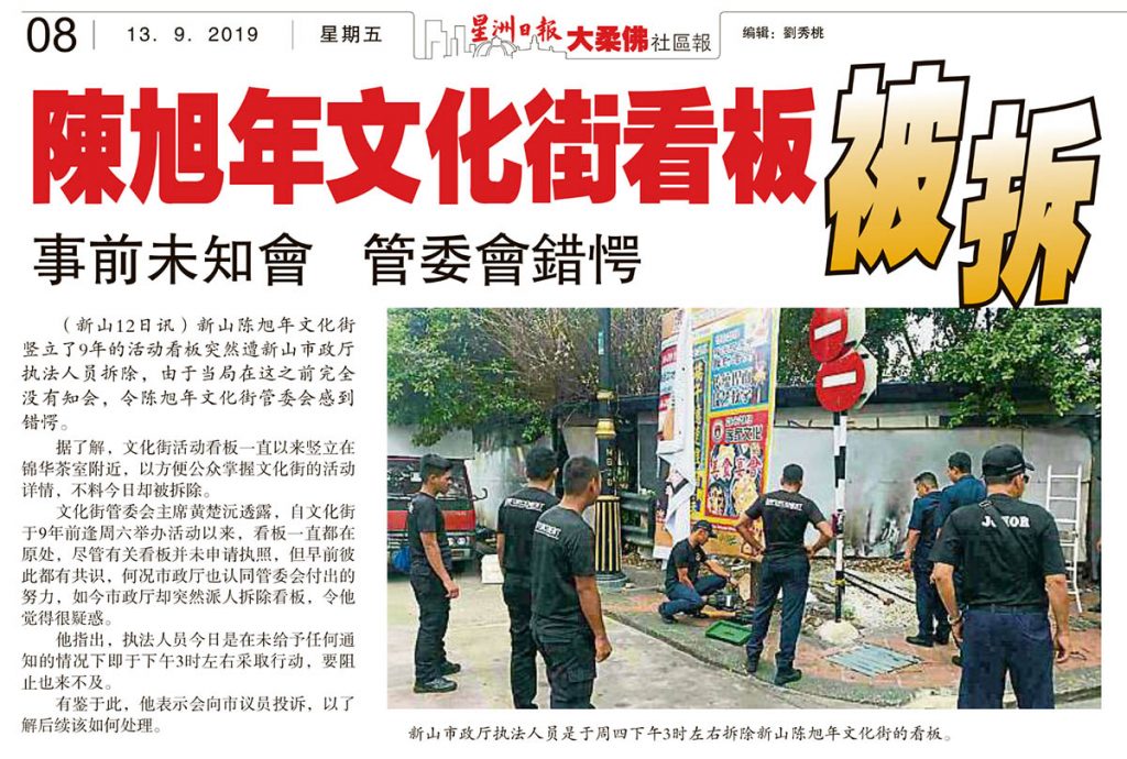 陈旭年文化街看板被拆