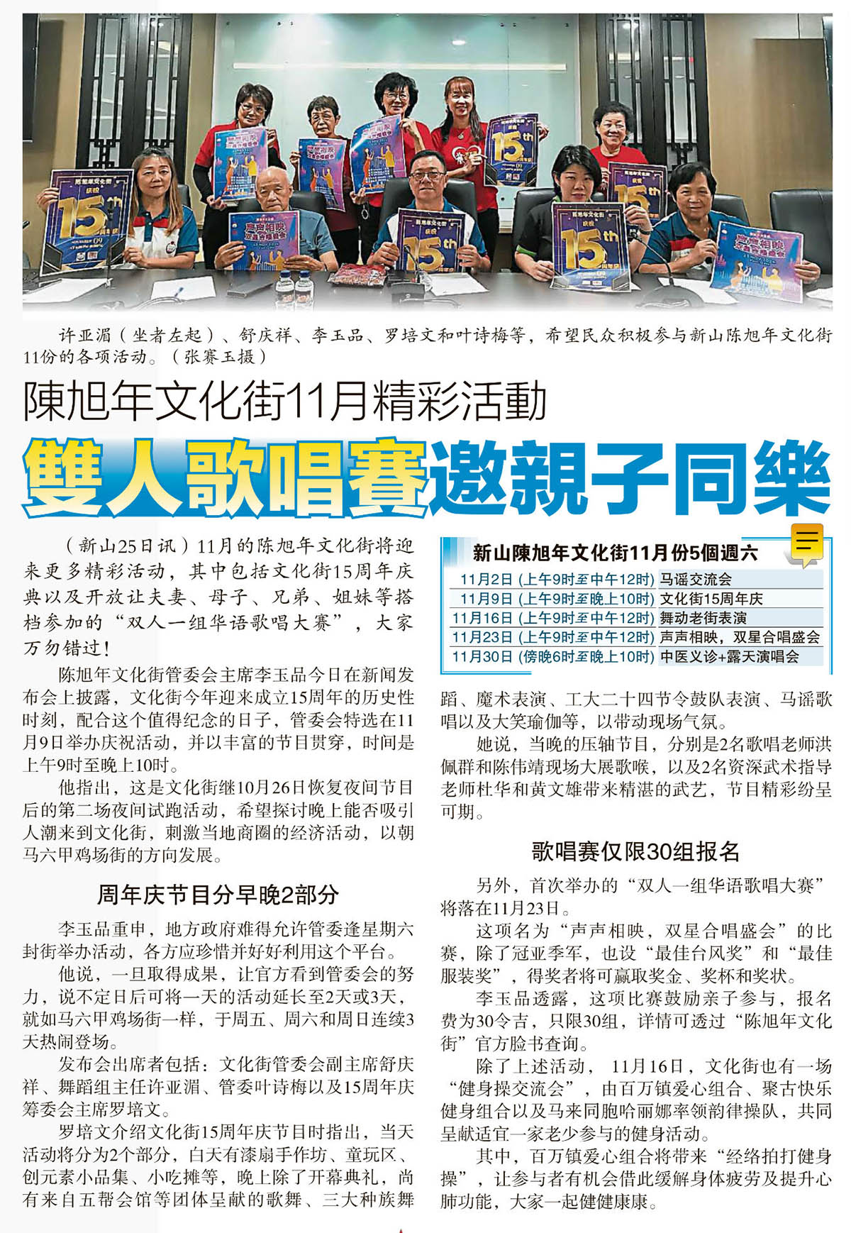 陈旭年文化街11月精彩活动-双人歌唱赛邀亲子同乐