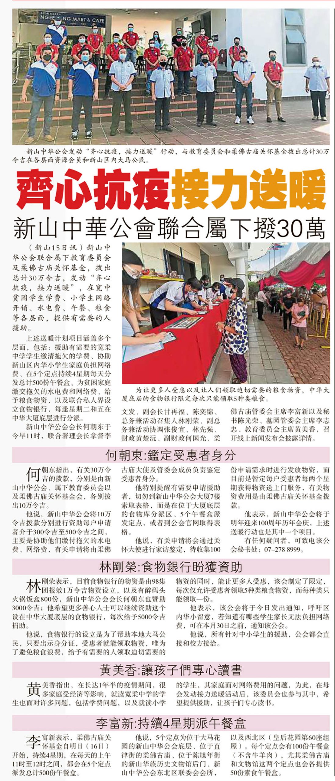 齐心抗疫接力送暖-新山中华公会联合属下拨30万