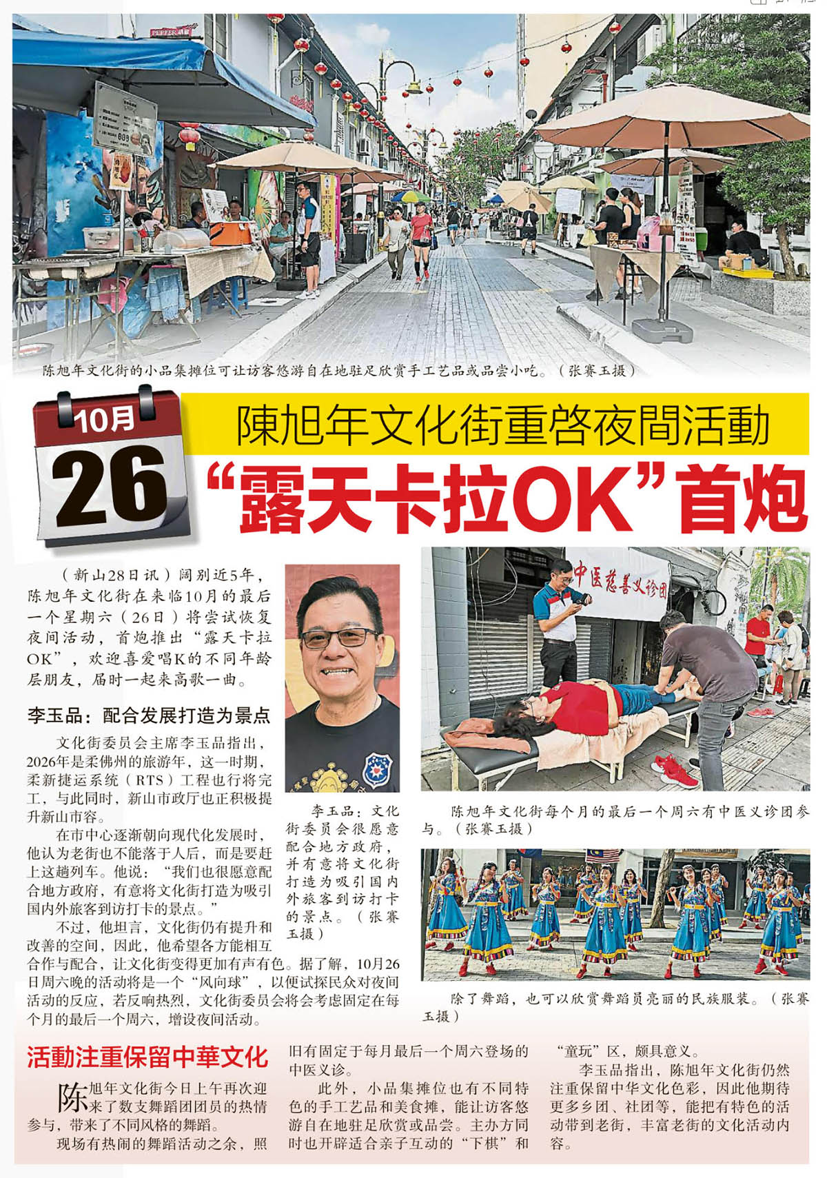 剪报 品牌活动 资料库 陈旭年文化街 10月26陈旭年文化街重启夜间活动-“露天卡拉OK”首炮 September 29, 2024October 31, 2025 gypsy 395 Views 星洲日报剪报