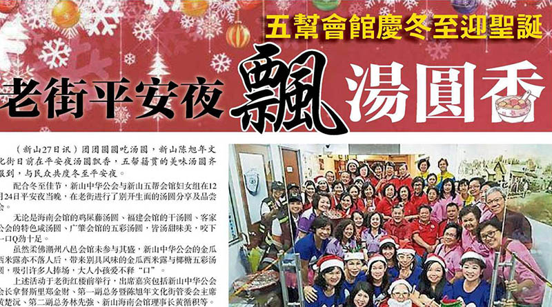 剪报 新山陈旭年文化街委员会 活动记录 陈旭年文化街 28-12-2016 剪报 – 老街平安夜飘汤圆香 December 31, 2016August 29, 2017 gypsy 2484 Views